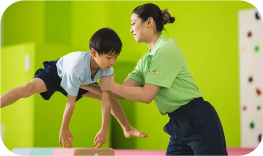 基礎的な運動(走る・跳ぶ・回る・逆立ちなど)をはじめとし、体操に慣れていく為のレッスン内容です。