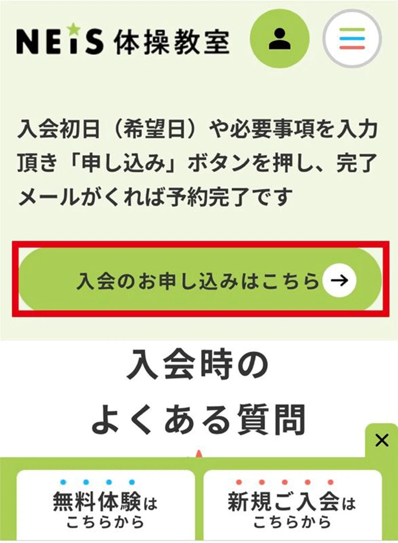 下記の「入会の申し込みはこちら」ボタンをクリック