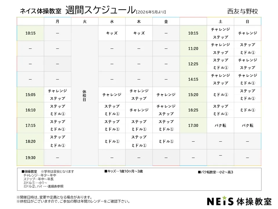 5/13(水) 西友与野校OPEN! ※5/29(金)~体験レッスン開始 (ご予約受付中)
