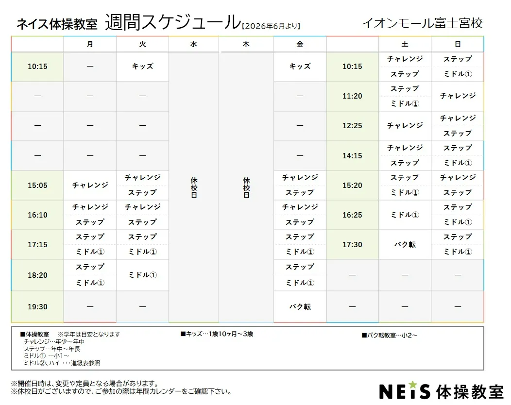 休校日:6/3(水)、6/4(木)、6/10(水)、6/11(木)