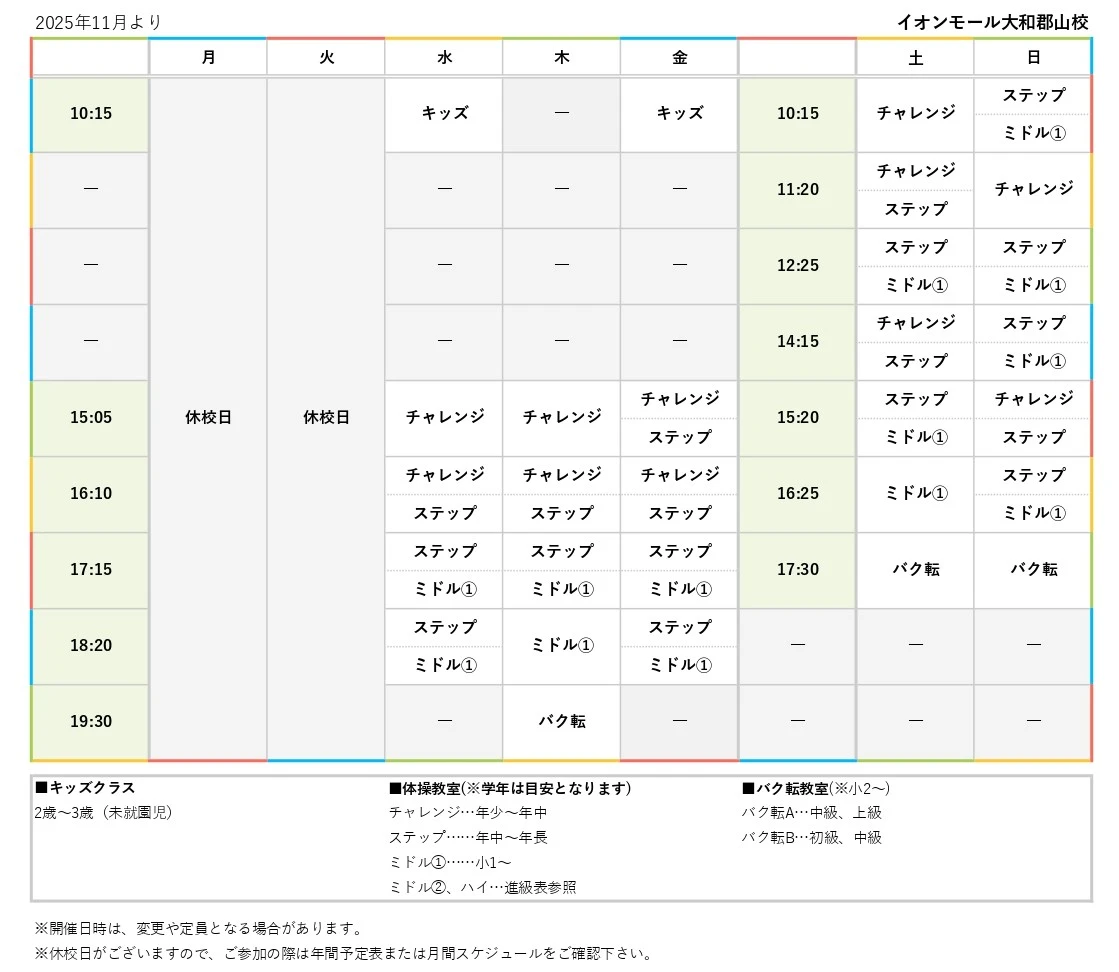 11/14(金) イオンモール大和郡山校OPEN! ※11/28(金)~体験レッスン開始 (ご予約受付中)