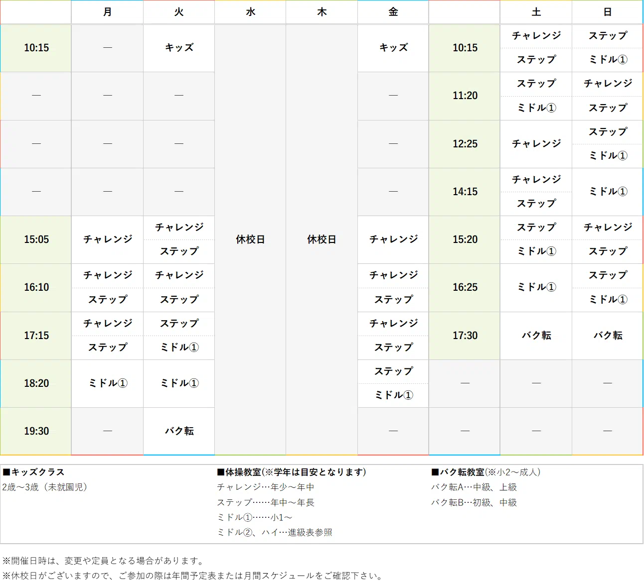 ※水曜・木曜 休校